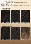• TRIPLE THE LIFESPAN — Up To 3x The Lifespan Of Regular Brazilian Virgin Remy Hair Bundle.Lasts up to 24 months with proper care. Cuticle-aligned raw hair resists tangling, shedding and dryness/frizz; soft, full, healthy ends stay bouncy through multiple installs
